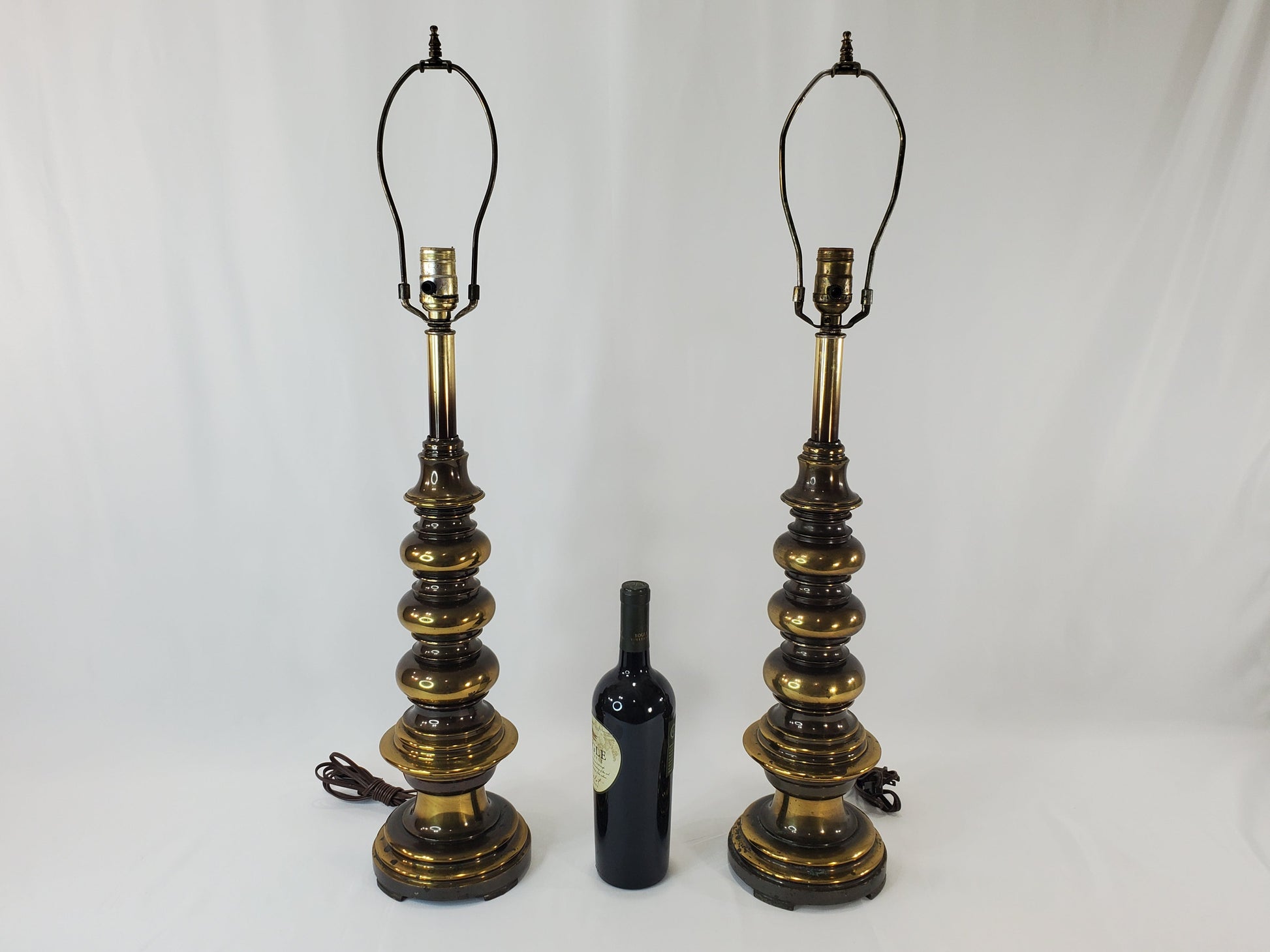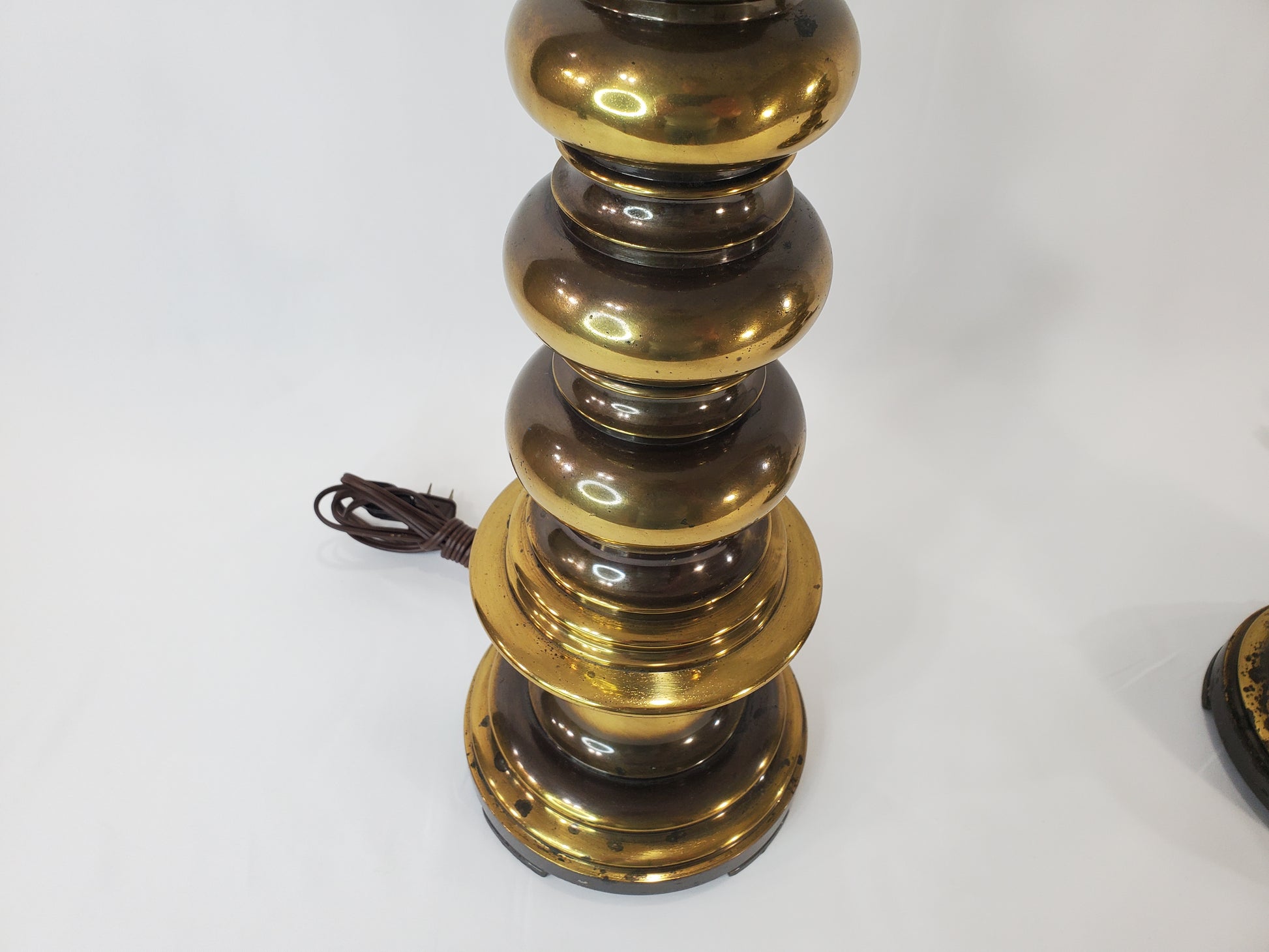 Pair of Vintage MCM Stacked Orb Brass Table Lamps