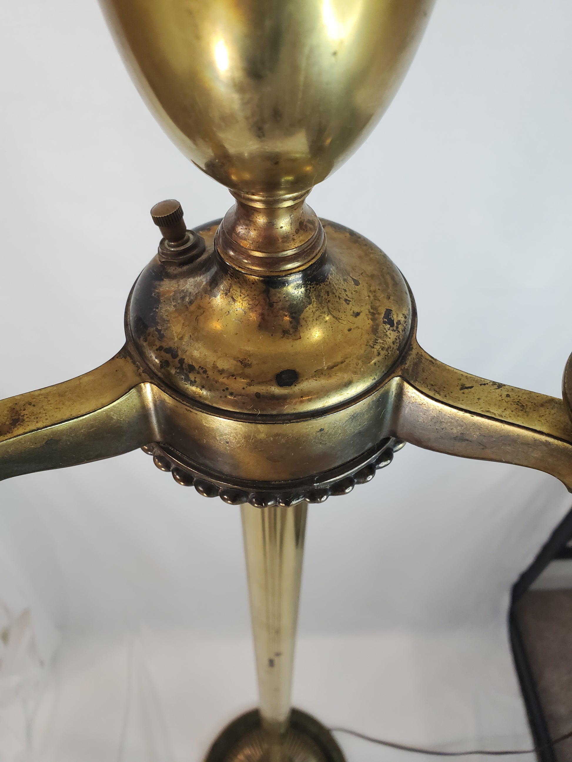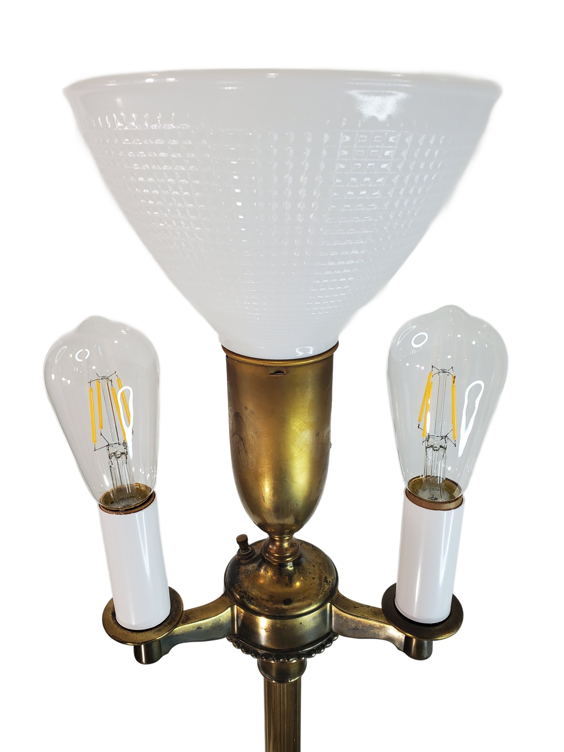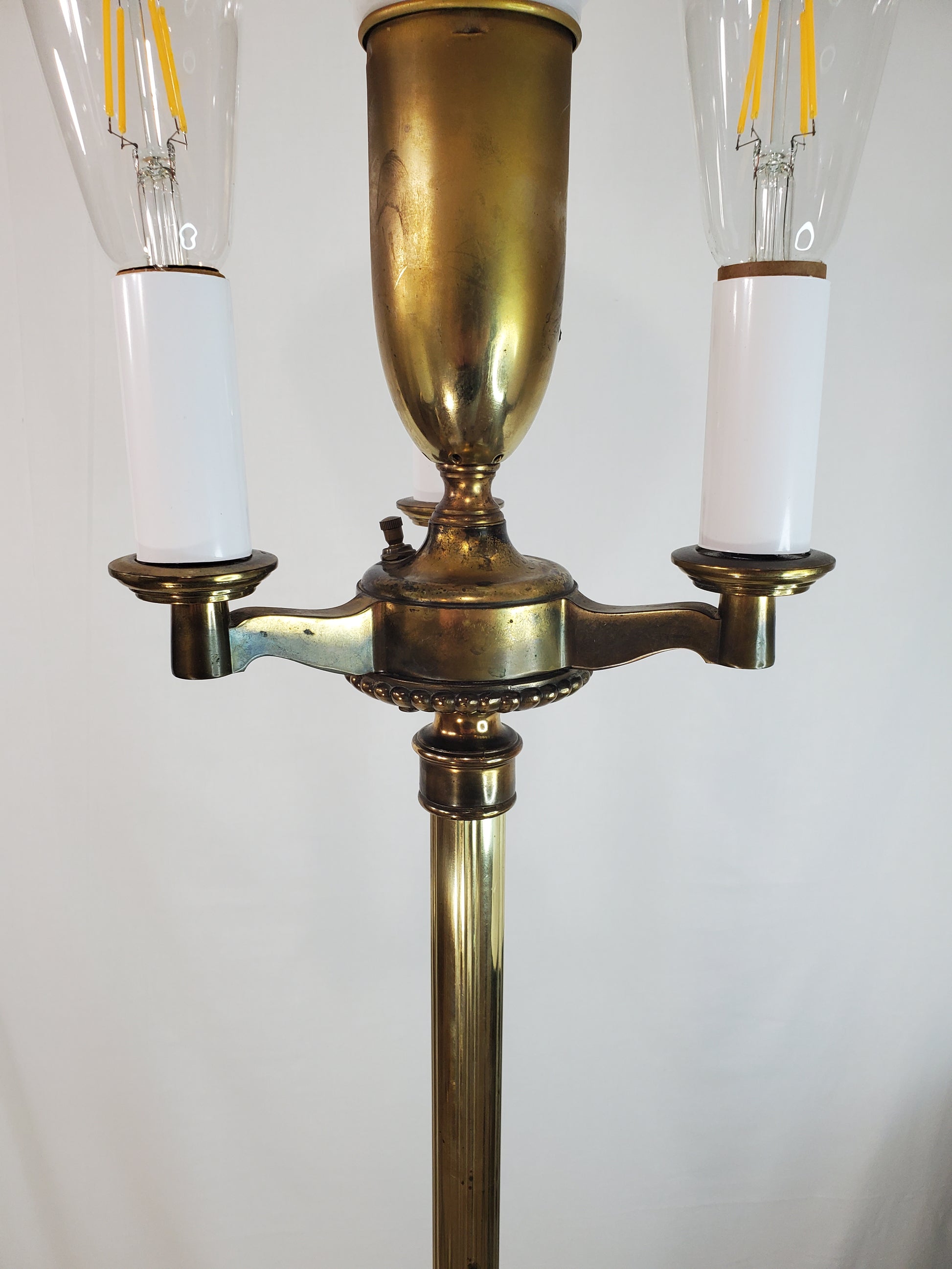 This lamp is fully functioning with a switch for the large mogul socket and bulb, and another switch which controls the three candle arms. You can turn on one, two, or all three. The lamp can also be turned on and off by grabbing a hold of the pole and pushing it down so that it clicks (manufacturer refers to this as the "Special on-off Stiffel Switch"). This will turn the light on and off in addition to the other switches.