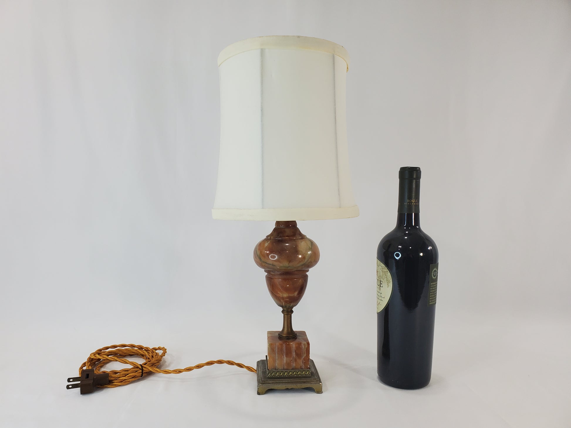 This lamp works well and has new wiring with a period-style, twisted cloth cord. It’s a good choice for someone looking for a unique vintage item that is both practical and stylish. There are some light scratches and scuffs in the stone, consistent with age and nature of the alabaster. Please view photos.